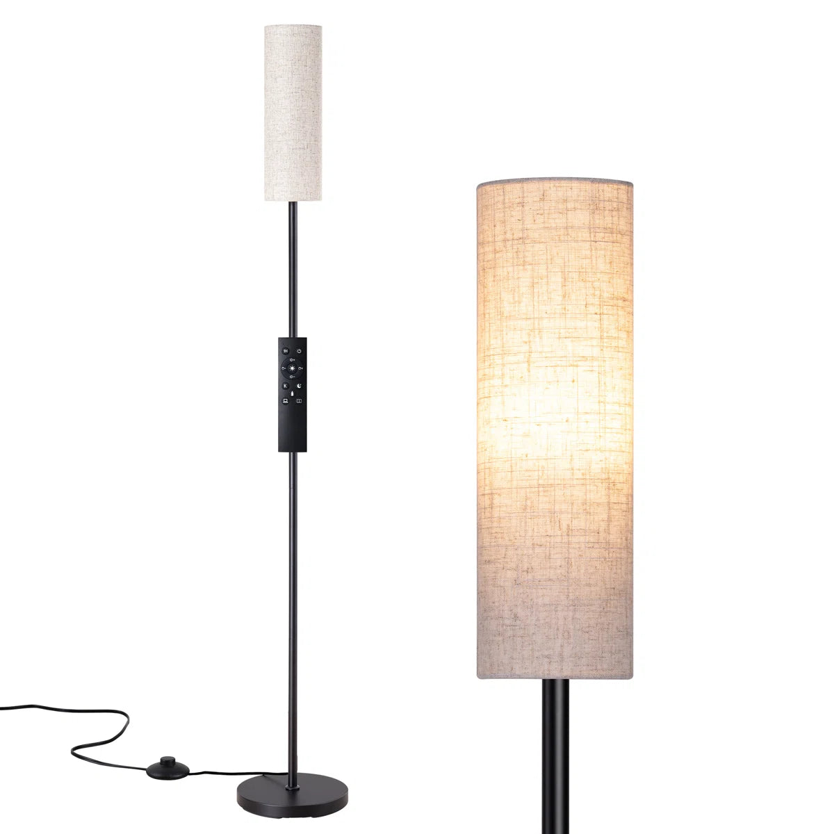 Equal parts modern and glam, this traditional floor lamp sets the ideal atmosphere for your living space. It features adjustable color temperature and brightness settings, whether you're reading, working, enjoying dinner, and more. A remote control comes with this lamp, so you can operate easily from a distance. There's also an included LED bulb that sits behind a beige linen drum shade for a tempered dimmable glow. Crafted from iron with a distinctive finish, it has a compact design that works for any room.