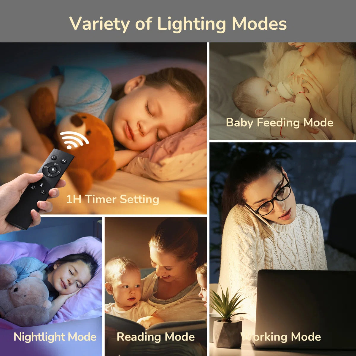 - Magnetic remote control that features four separate modes -- baby feeding, working, reading, nightlight